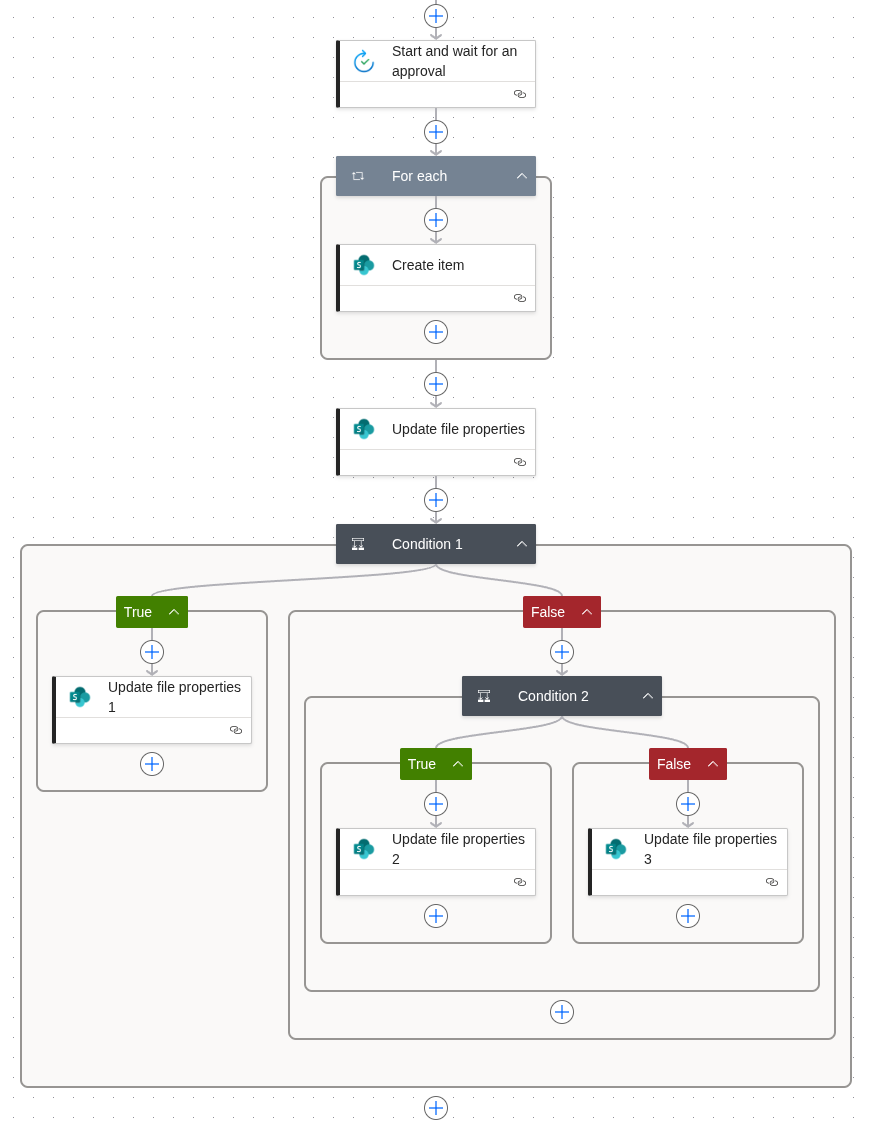 - Uses the CustomResponseAwaitAll type, meaning all approvers must respond before the flow continues.
